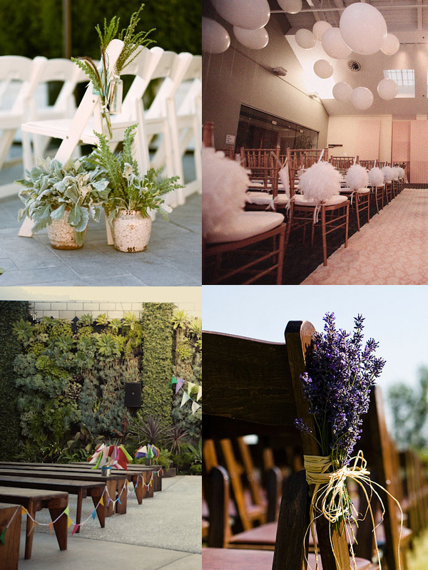 Hoy un post rápido de inspiración para ayudaros a la hora de decidir cómo queréis decorar los bancos de la iglesia, o las sillas de los invitados en la ceremonia civil de vuestra boda.