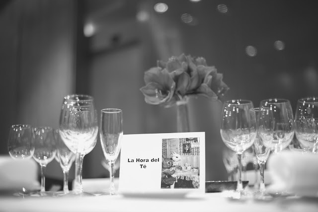 El salón donde se celebró la cena es moderno y sobrio, por lo que elegimos una mantelería negra con cubre-mantel en color blanco; y unos centros de mesa minimalistas en color rojo, que daban un toque de color pero iban totalmente acordes con la decoración del espacio.