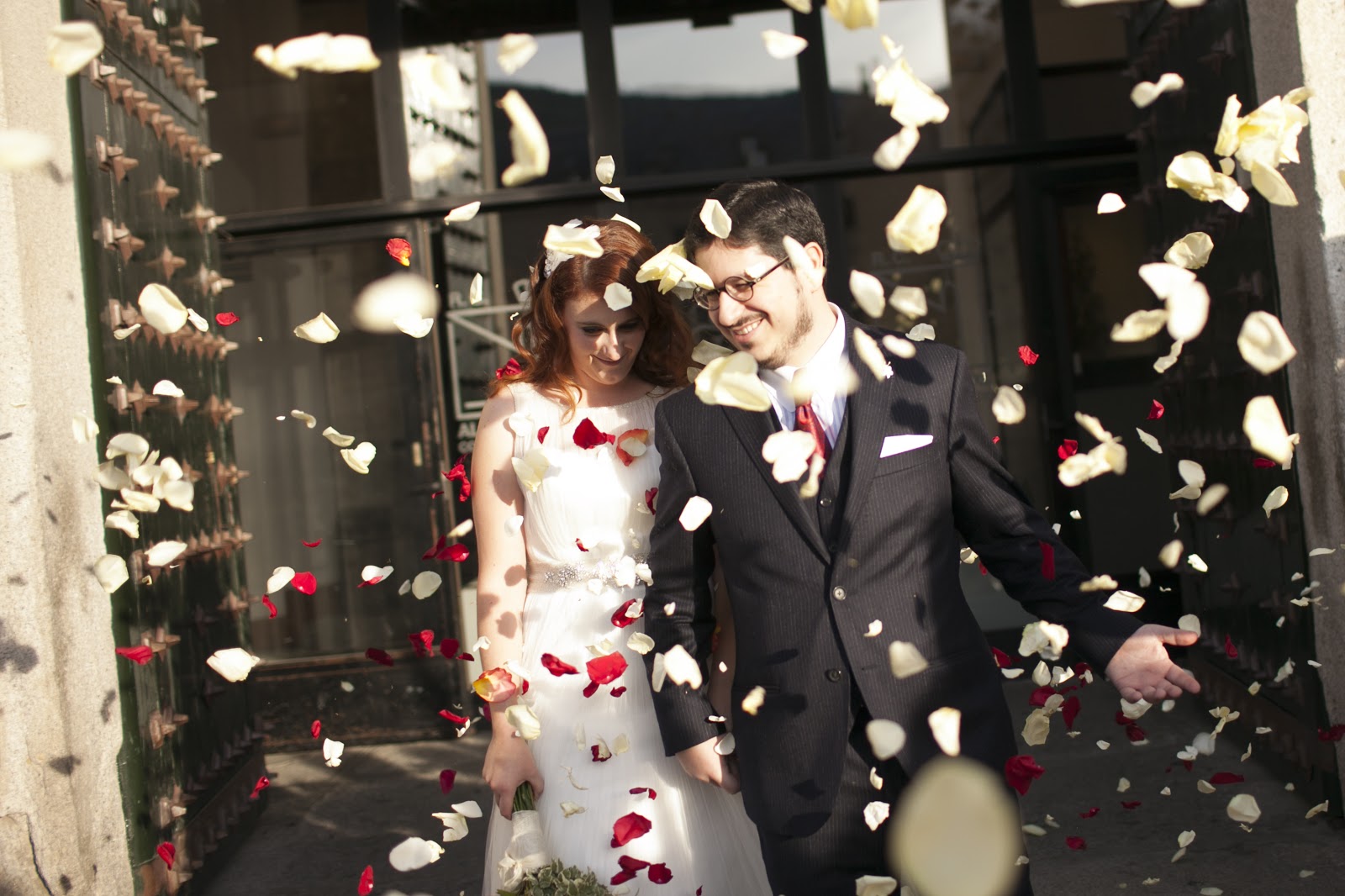 A la salida de la iglesia les recibimos con una lluvia de pétalos -que también se encargó Masshiro de proporcionarnos- y que hicieron de su primera aparición como recién casados un momento muy especial.