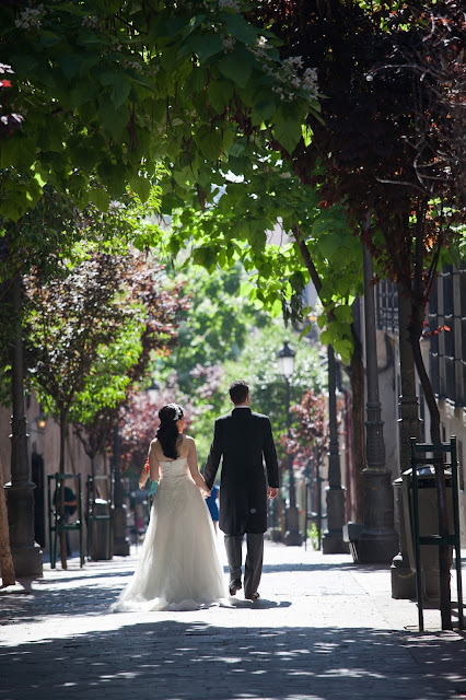 Helena & Javier, tenían claro desde el principio que para ellos era muy importante disfrutar de su gran día con sus invitados (la mayoría de los cuales se habían desplazado a Madrid desde distintas partes del mundo), y no querían perder tiempo haciendo fotos de pareja después de la iglesia; así que contrataron un reportaje post-boda para el día siguiente, y aquí tenéis el resultado del precioso paseo que dieron por Madrid.
