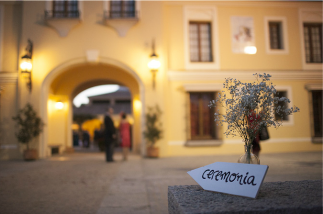 El enlace se celebró en la finca Los Arcos de Fuentepizarro. La ceremonia se realizó al aire libre, el tiempo acompañó totalmente y quedó todo precioso en el ambiente natural en el que nos encontrábamos (tenéis más detalles de la decoración que diseñamos para este momento en este post).