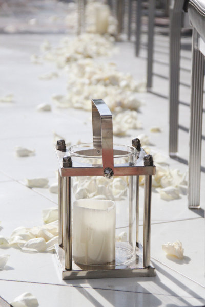 Si tenemos alguna superficie a la que queremos dar un toque especial, sin recargarla y sin complicarnos mucho la vida, el dúo pétalos + pequeñas velas nos permitirá que la zona quede cuidada y crear un efecto acogedor y muy propio para una boda.