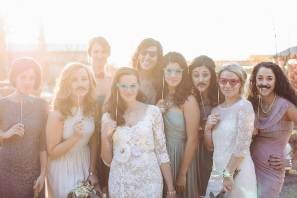 Y para terminar os dejo con esta foto tan graciosa, de la novia y sus invitadas posando con atrezzo del photobooth 🙂