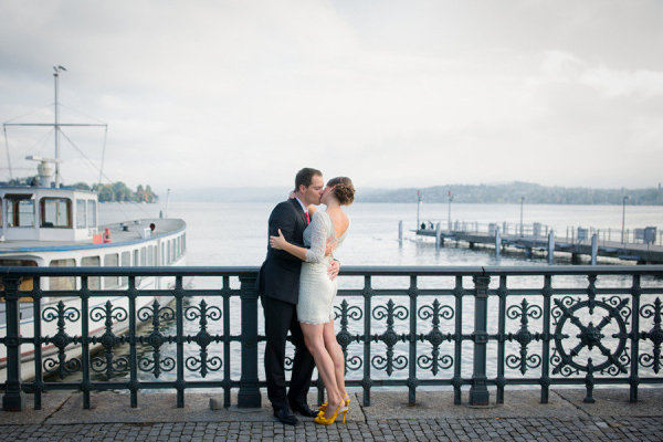 Esta novia con vestido corto y zapatos amarillos me ha encantado, me parece un look súper personal y la foto en el puerto no puede ser más bonita.