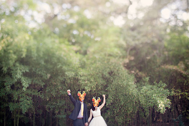 Cada pareja de novios es un mundo -por eso cada boda tiene que personalizarse totalmente y con un servicio de organización de bodas os aseguráis de ello-, y los hay tan lanzados que incluso se animan a plantarse unas máscaras para la sesión fotográfica.
