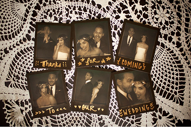 Esta idea de utilizar una polaroid para sacar unas fotos graciosas de los novios el día del enlace, y agradecer con ellas a los invitados su asistencia, me parece simplemente genial; y un fiel reflejo del carácter alegre de los novios y de su enlace.