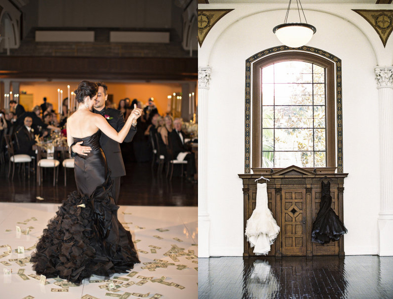 Y como los posts del viernes son un remix de detalles de bodas que me han llamado la atención -aunque no sea exactamente una foto divertida- no he podido dejar de incluir a esta novia que cambió de vestido después de la ceremonia, y eligió ¡un modelo en color negro como segundo outfit el día de su boda! Hace un año os hablamos de los diseños en color negro de la diseñadora Vera Wang, pero creo que es la primera vez que veo a una novia real vestida tan oscura…