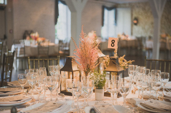 Los faroles de forja también son súper habituales para dar calidez y ambientar los exteriores de la celebración, pero como podéis ver en esta foto, utilizando unos que no tengan un tamaño exagerado pueden quedar genial también como parte del centro de mesa.