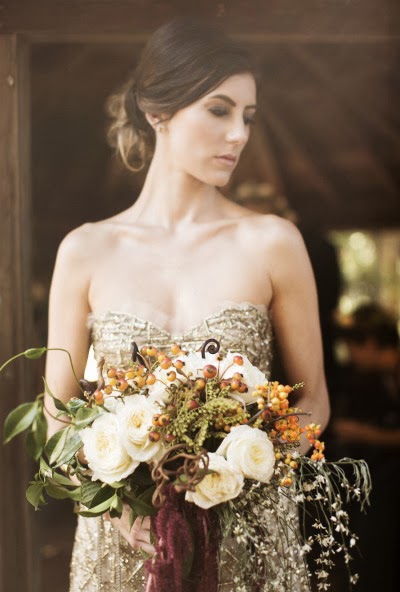 Esta novia eligió un vestido dorado para su enlace, y con sinceridad, el resultado de su look no puede gustarme más. Elegante, dulce, sofisticado, otoñal, y muy muy personal.