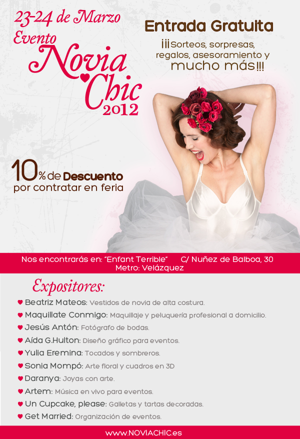 El post con el que empezamos esta semana más corta de lo habitual es para presentaros un evento que no podéis perderos si os casáis en los próximos meses y estáis inmersas en los preparativos de vuestro gran día. Se celebrará el próximo fin de semana (viernes y sábado) en Madrid, y para asistir solo tenéis que imprimir la invitación que tenéis como imagen en este post.