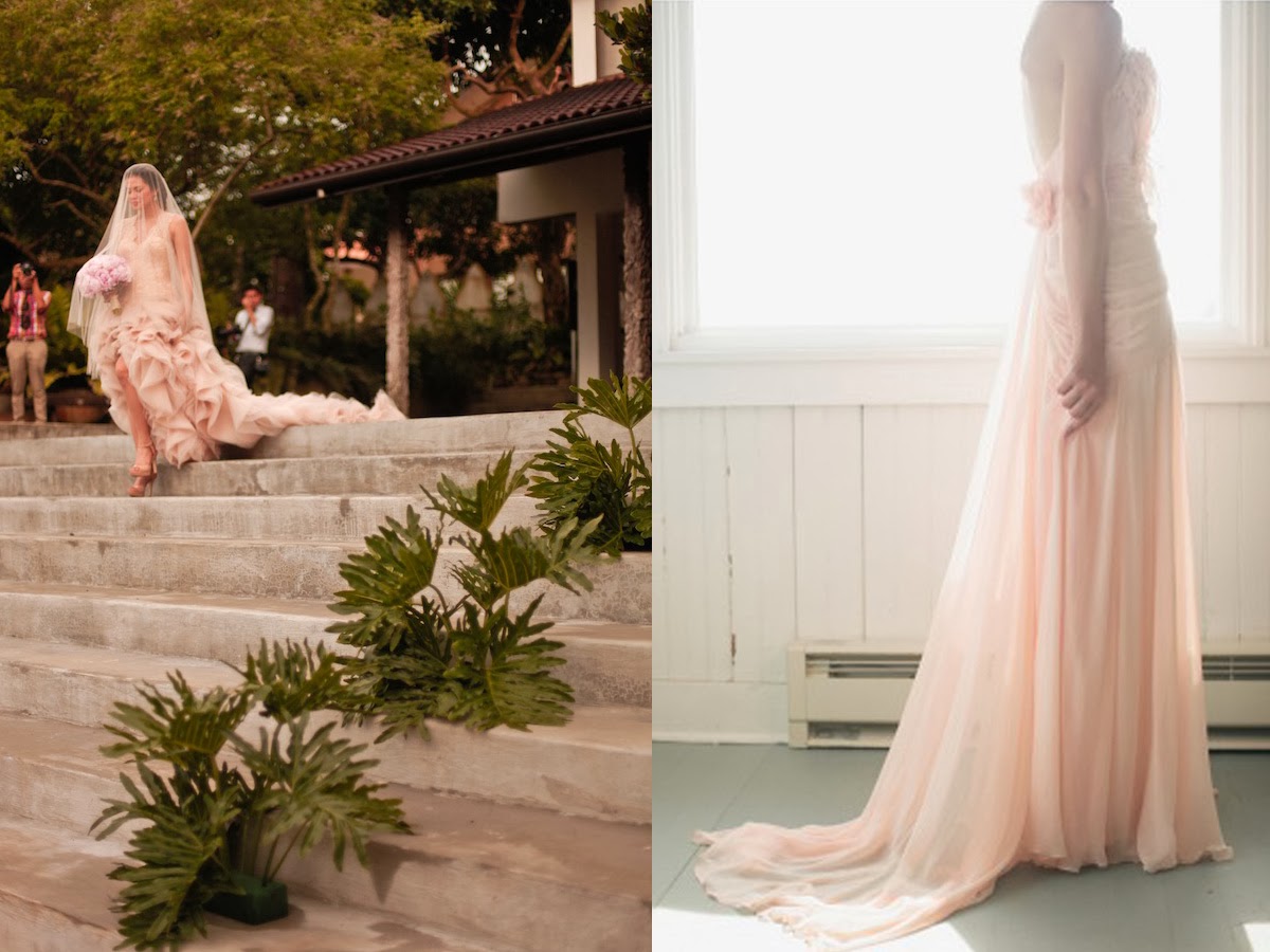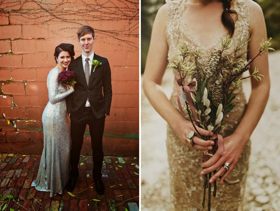 En el post de hoy os traigo una recopilación de looks que me han llamado la atención y he ido guardando para compartir con vosotros. Algunos me gustan más y otros me gustan menos, pero lo importante es que todas estas novias disfrutaron de su gran día vestidas a su manera (con glitter en dorado o tonos plata, con un vestido corto, luciendo una prenda de color rosa, o bien un sencillísimo vestido blanco que bien podría utilizarse para un paseo a la orilla del mar en una tarde de verano).