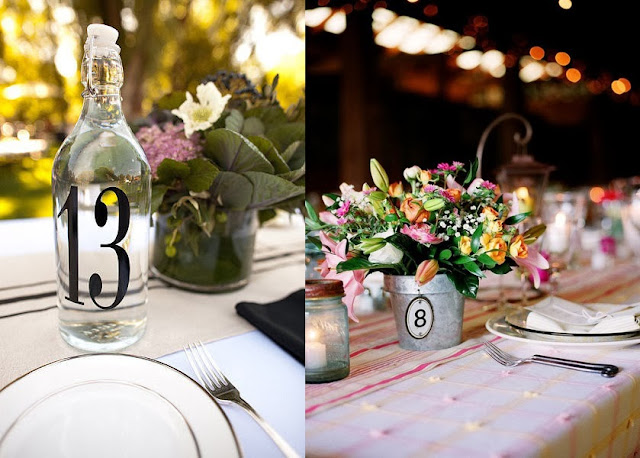 Una de las cosas que más quebraderos de cabeza suele dar es el nombre que le ponemos a las mesas del banquete. Y aunque queda genial ser originales y dar una temática al montaje (canciones de amor, parejas de película, películas, flores, etc.) muchas veces el punto diferente podemos darlo utilizando un soporte que llame la atención para indicar el número de la mesa. Así que en el post de hoy quiero dar algunas opciones que a mi me parecen muy chulas para cumplir esta función.