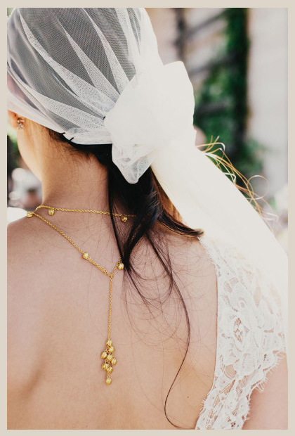 Comienzo con una novia que me dejó totalmente sorprendida con la forma tan original que ha tenido de colocarse el velo, haciendo una especie de nudo y dándole caída lateral, al igual que al peinado. El detalle del colgante en la espalda es súper personal, y la verdad es que en conjunto me resultó una fotografía muy bonita y llamativa, que transmite totalmente que la novia tiene una personalidad muy marcada.