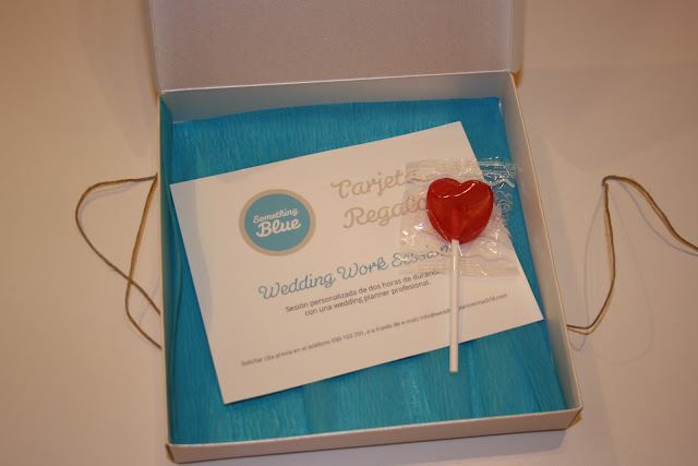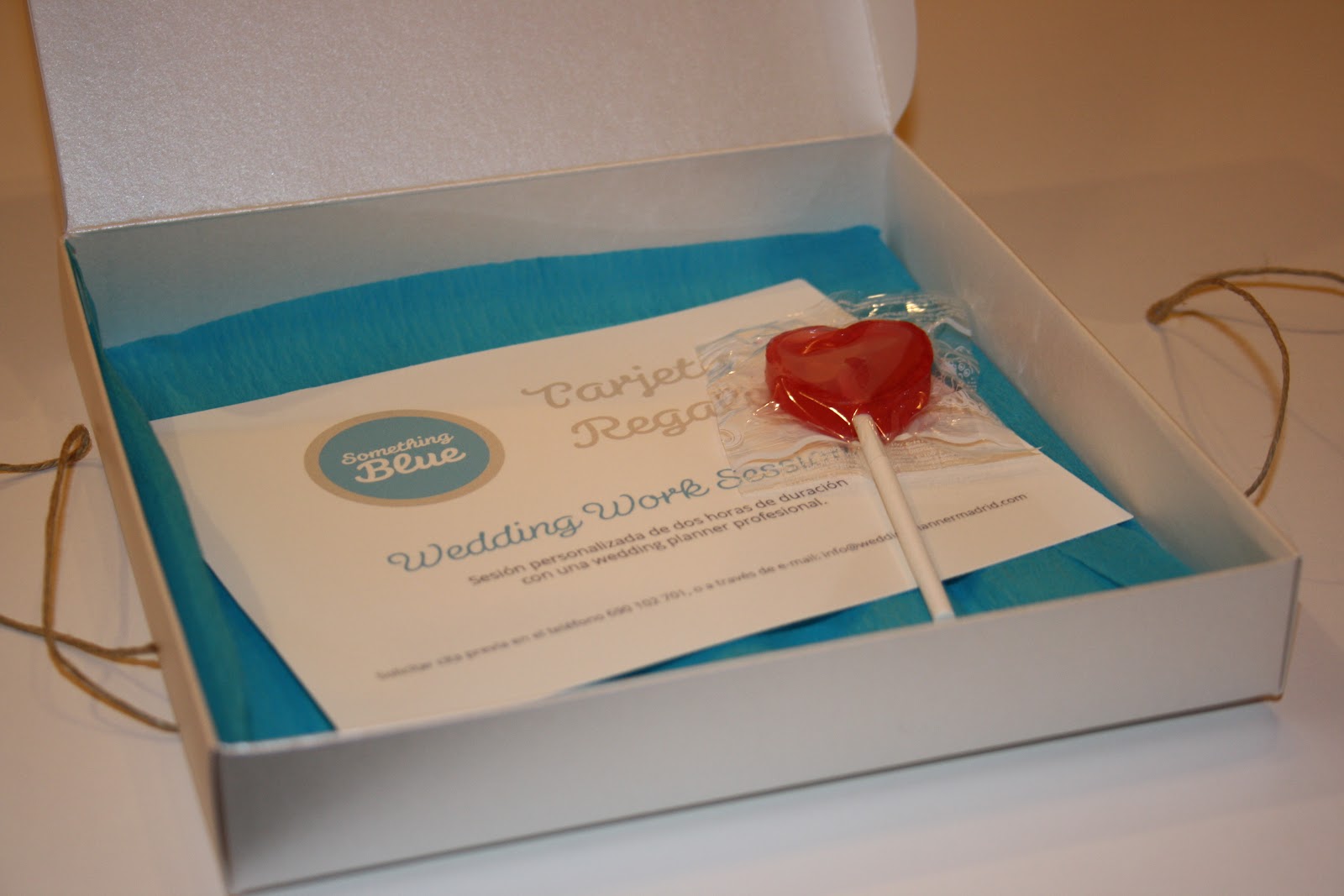 Se trata de una cajita que contiene una Tarjeta Regalo válida por una Wedding Work Session de 2 horas de duración para que los novios tengan asesoramiento profesional con la organización de su boda.