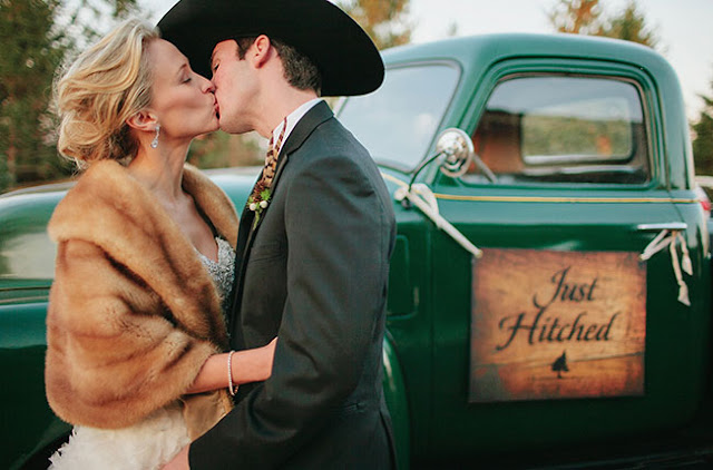 ¿No os encanta esta pareja que ha cambiado el típico letrero de “Recién Casados” por un “Recién Enganchados”? Unos novios muy auténticos, ¡solo hay que ver el sombrero de él!