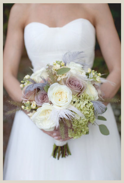 Hay todo tipo de ramos preciosos, pero de vez en cuando aparece uno que me resulta simplemente perfecto; y el que os quiero mostrar hoy lo es por su romanticismo y originalidad. Los tonos de las flores elegidas -en beige y malva empolvado-, y el hecho de que lleve plumas mezcladas con la flor, forman una combinación perfecta y delicada que lo hace el ramo más bonito que he visto en mucho tiempo.