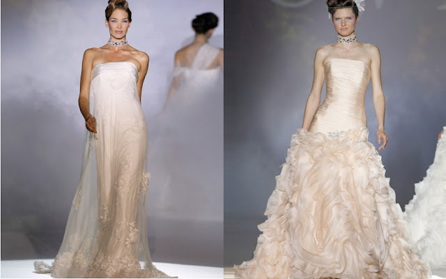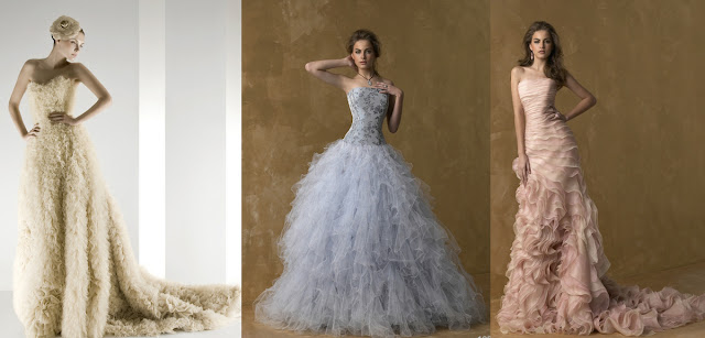A pesar de que la oferta de vestidos de novia de colores es escasa aquí os mostramos algunas posibilidades, eso sí, la mayoría de ellos no son aptos para tímidas.