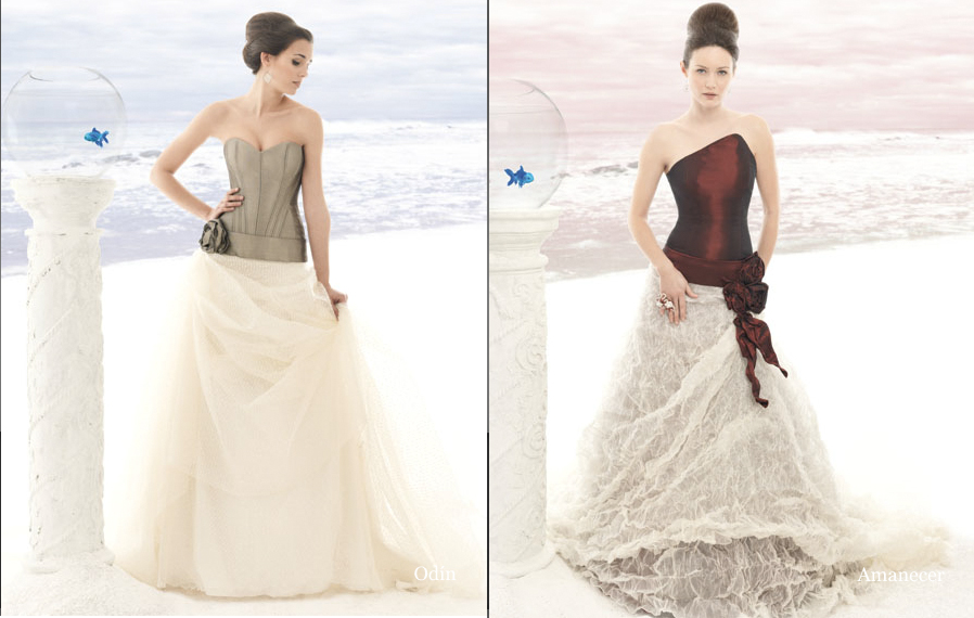 A pesar de que la oferta de vestidos de novia de colores es escasa aquí os mostramos algunas posibilidades, eso sí, la mayoría de ellos no son aptos para tímidas.